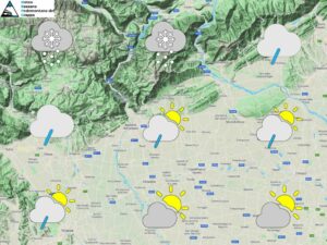 Bella giornata con cieli poco nuvolosi e ottima visibilità, temperature in calo in quota, in pianura invece saranno stazionarie o in lieve calo nelle minime, nubi permettendo nelle ore notturne. Attendibilità: media
