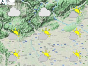 Condizioni meteo in nuovo miglioramento dopo la variabilità notturna. Ci aspetta una giornata con atmosfera limpida e ampie schiarite in un contesto di clima in linea con la media del periodo. Attendibilità: medio-bassa
