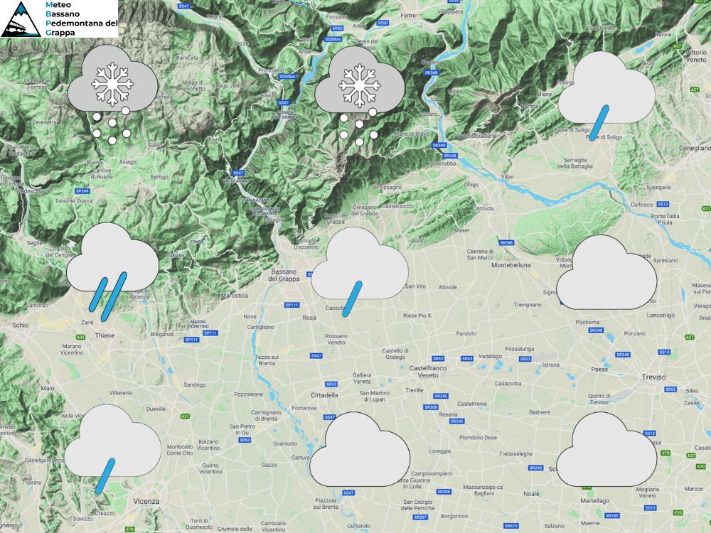 Probabilità di precipitazioni settore pianura: 100%, tra notte e primo mattino