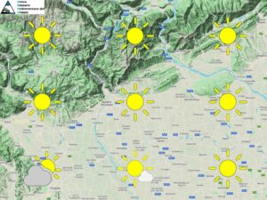 La giornata di domenica trascorrerà all’insegna di tempo stabile e ben soleggiato sul nostro territorio. Tornerà anche un po’ di brina al primo mattino in aperta campagna e sulle valli ma in generale il clima non sarà ancora consono al periodo, un dicembre molto mite, per ora al primo posto negli ultimi 100 anni, vedremo se gli ultimi giorni del mese riusciranno ad abbassare nettamente la temperature e a non farci battere l’ennesimo record mensile. Al mattino cielo sereno ma con velature sparse. Possibili nebbie sulle basse pianure in successivo dissolvimento. Nel pomeriggio sole su gran parte dei settori fatta eccezione per nuvolosità sparsa a sud-ovest soprattutto nel tardo pomeriggio. In serata ecco che da sud arriveranno nubi più estese ma con schiarite sparse che resisteranno comunque fino alla mezzanotte. Temperature minime in calo e attorno allo zero in pianura, massime stazionarie, sempre in doppia cifra come ogni giorni di questo mese anomalo.