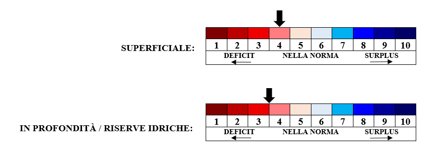 INDICATORE QUANTITÀ D’ACQUA PRESENTE NEL TERRITORIO: indicatore della situazione idrica media nel territorio a livello di strato superficiale (piogge recenti, evapotraspirazione) e in profondità/riserve idriche (falde, acque sotterranee, riserve idriche presenti su laghi e fiumi, quantità di neve presente sui monti). L’indicatore è elaborato direttamente da Meteo Bassano e Pedemontana del Grappa sulla base di dati di stazioni meteo a norma, livelli di falda, livelli di portata dei fiumi, nivometri ecc.