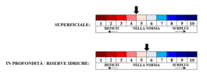 INDICATORE QUANTITÀ D’ACQUA PRESENTE NEL TERRITORIO: indicatore della situazione idrica media nel territorio a livello di strato superficiale (piogge recenti, evapotraspirazione) e in profondità/riserve idriche (falde, acque sotterranee, riserve idriche presenti su laghi e fiumi, quantità di neve presente sui monti). L’indicatore è elaborato direttamente da Meteo Bassano e Pedemontana del Grappa sulla base di dati di stazioni meteo a norma, livelli di falda, livelli di portata dei fiumi, nivometri ecc.