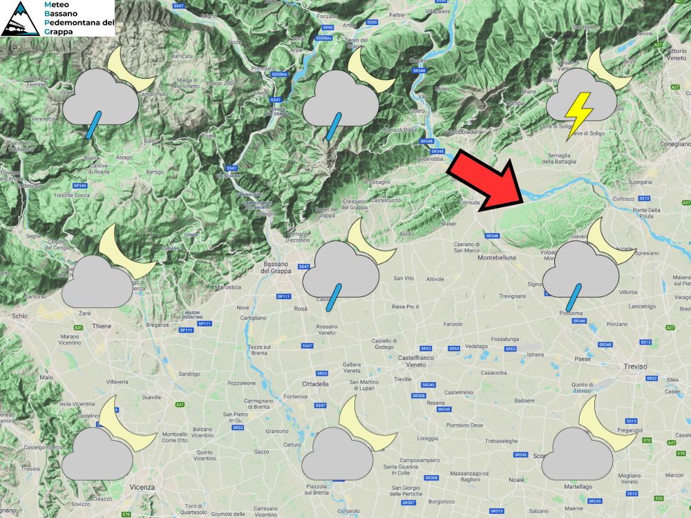 Una veloce perturbazione atlantica attraversa il nostro territorio portando un deciso peggioramento del tempo con pioggia e vento soprattutto nelle ore centrali del girono. Si partirà con una mattinata già nuvolosa con le prime deboli piogge sparse in arrivo da sud-ovest. Nel pomeriggio poi ci aspettiamo la fase più intensa del peggioramento con rovesci diffusi localmente anche di moderata intensità. In serata poi attenuazione dei fenomeni sui settori occidentali mentre da nord scenderà il fronte freddo che porterà un’altra passata veloce di rovesci e temporali sul trevigiano centro-orientale con fenomeni però anche qui in esaurimento entro la mezzanotte. Ampi rasserenamenti poi nelle ore successive. Le temperature saranno in aumento nei valori minimi e in lieve calo in quelli massimi. Ventilazione in rinforzo soprattutto in quota e sulle medie-basse pianure.