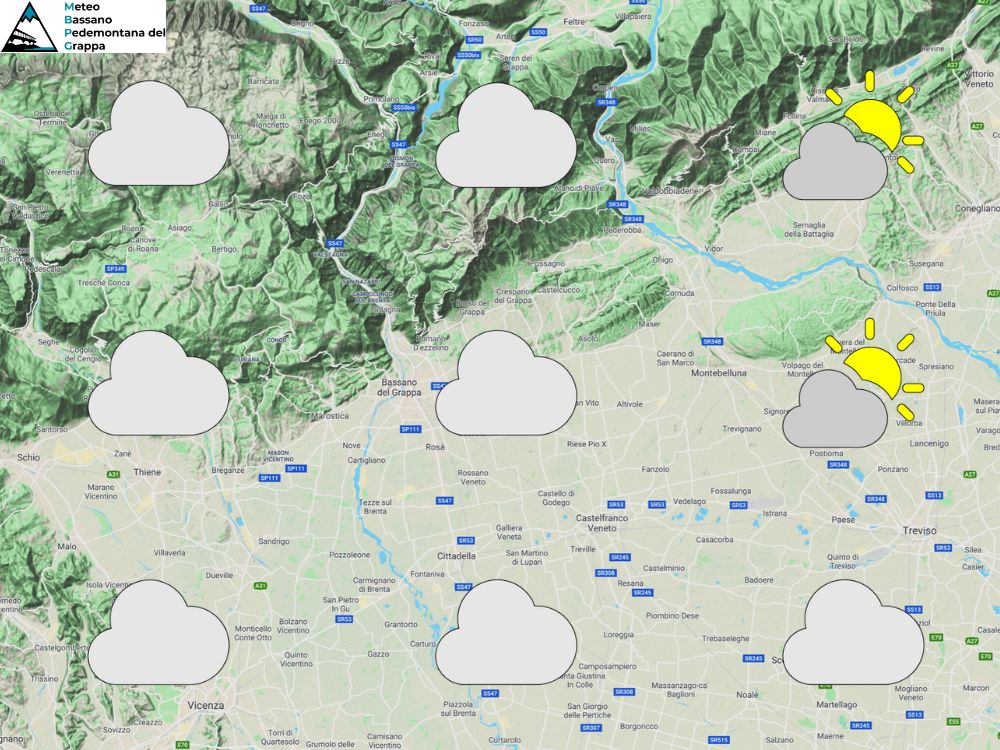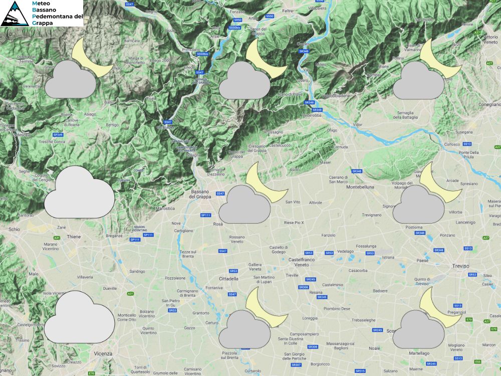 Probabilità di precipitazioni settore pianura: 10%, tra notte e primo mattino