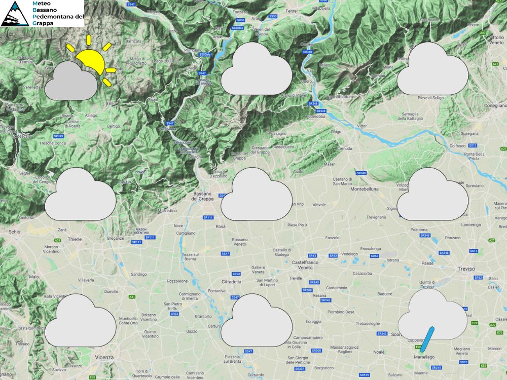Una perturbazione atlantica attraversa il Veneto portando nubi e precipitazioni soprattutto nella prima parte del giorno sulle pianure, fenomeni invece più blandi a nord delle Prealpi. Nella notte e al mattino cielo coperto con piogge diffuse in genere di debole entità. Nel pomeriggio residui fenomeni su medie e basse pianura, miglioramento invece sui settori montani. In serata avremo un nuovo aumento della nuvolosità da sud con cielo quindi che tornerà a coprirsi ovunque e con qualche breve piovasco sparso sulle pianure centro-orientali. Le temperature saranno in netto rialzo nei valori minimi, stazionarie in quelli massimi.