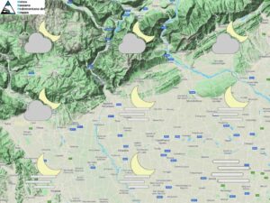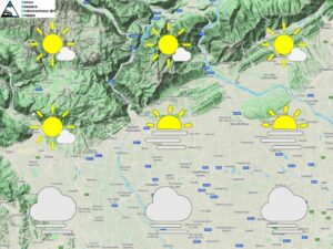 Tempo stabile e soleggiato su tutto il nostro territorio con banchi di nebbia più rari e relegati ai settori di bassa pianura. Temperature minime stazionarie e massime ancora in aumento con punte anche fino ai 18-19 gradi sulle aree pianeggianti. Attendibilità: media