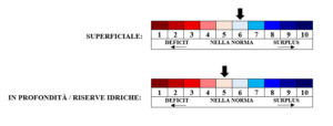 INDICATORE QUANTITÀ D’ACQUA PRESENTE NEL TERRITORIO: indicatore della situazione idrica media nel territorio a livello di strato superficiale (piogge recenti, evapotraspirazione) e in profondità/riserve idriche (falde, acque sotterranee, riserve idriche presenti su laghi e fiumi, quantità di neve presente sui monti). L’indicatore è elaborato direttamente da Meteo Bassano e Pedemontana del Grappa sulla base di dati di stazioni meteo a norma, livelli di falda, livelli di portata dei fiumi, nivometri ecc.