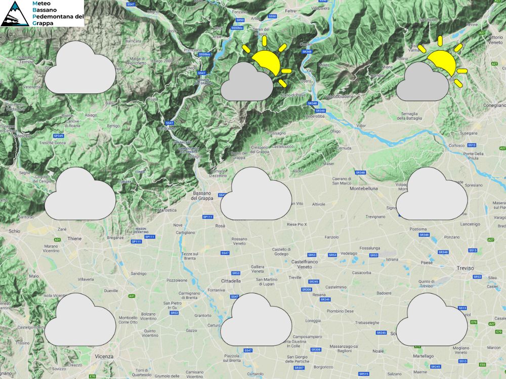 Tempo in miglioramento con schiarite alternate ad annuvolamenti sparsi senza precipitazioni. Le temperature saranno in ulteriore aumento sia in quota sia in pianura con valori sopra la media del periodo soprattutto nelle minime. Attendibilità: media