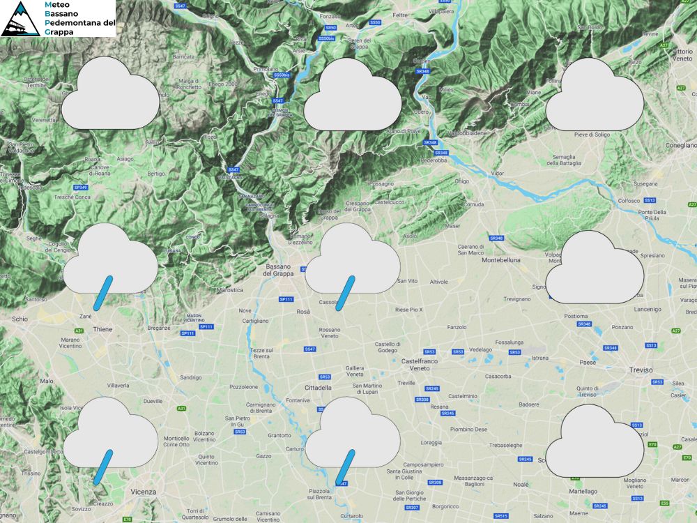 Nella notte e fino al primo mattino ancora cielo molto nuvoloso con piogge in graduale spostamento verso est, in seguito ci attendiamo un’attenuazione dei fenomeni ma con cielo che rimarrà in prevalenza nuvoloso per nubi basse alternate a qualche schiarita. Temperature in aumento. Attendibilità: media