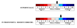 INDICATORE QUANTITÀ D’ACQUA PRESENTE NEL TERRITORIO: indicatore della situazione idrica media nel territorio a livello di strato superficiale (piogge recenti, evapotraspirazione) e in profondità/riserve idriche (falde, acque sotterranee, riserve idriche presenti su laghi e fiumi, quantità di neve presente sui monti). L’indicatore è elaborato direttamente da Meteo Bassano e Pedemontana del Grappa sulla base di dati di stazioni meteo a norma, livelli di falda, livelli di portata dei fiumi, nivometri ecc.