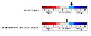 INDICATORE QUANTITÀ D’ACQUA PRESENTE NEL TERRITORIO: indicatore della situazione idrica media nel territorio a livello di strato superficiale (piogge recenti, evapotraspirazione) e in profondità/riserve idriche (falde, acque sotterranee, riserve idriche presenti su laghi e fiumi, quantità di neve presente sui monti). L’indicatore è elaborato direttamente da Meteo Bassano e Pedemontana del Grappa sulla base di dati di stazioni meteo a norma, livelli di falda, livelli di portata dei fiumi, nivometri ecc.
