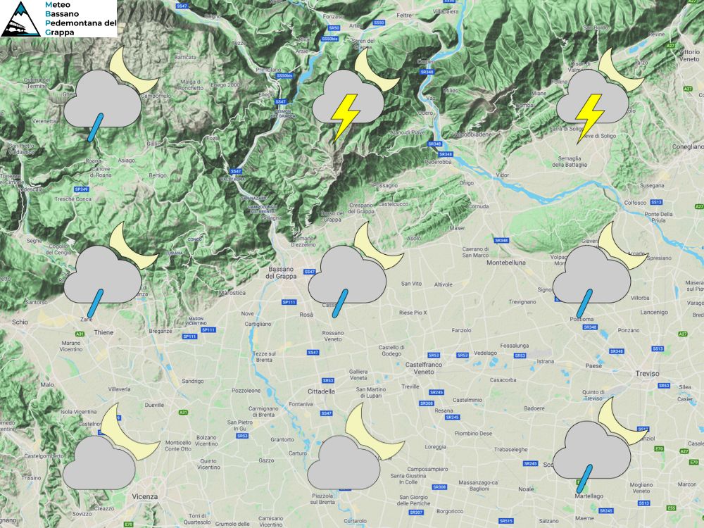Probabilità di precipitazioni settore pianura: 50% alta pianura, 30% altrove.