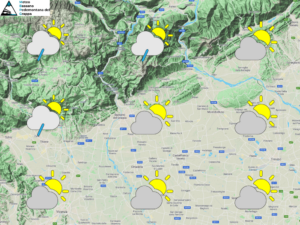 Fresche correnti dai quadranti settentrionali continuano a portare leggera instabilità a carattere sparso sul nostro territorio, anche la giornata di martedì quindi vedrà condizioni simili con rischio pioggia più elevato tra tardo pomeriggio e sera. Al mattino cielo parzialmente nuvoloso con tendenza a schiarite più ampie. Nel pomeriggio annuvolamenti diffusi in montagna accompagnati da qualche rovescio, in pianura tempo variabile con rischio pioggia basso, solo su alte pianure e pedemontane avremo qualche isolato fenomeno. In serata poi instabilità in ulteriore aumento con rovesci e possibilità di qualche temporale soprattutto sulla fascia prealpina e sempre in modo sparso anche su pedemontane e alte pianure. Temperature stazionarie attorno alla media nei valori massimi, leggermente al di sopra in quelli minimi.