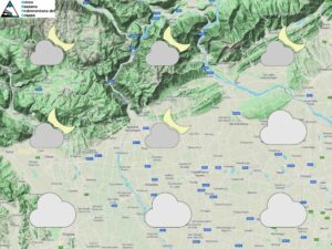 Tempo in lieve miglioramento ma avremo ancora nuvolosità estesa sia a bassa quota sia ad alta quota con probabilità di pioggia però nulla o ridotta. Le temperature saranno ancora circa stazionarie in pianura, in leggero aumento invece in quota. Attendibilità: media