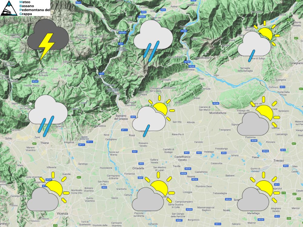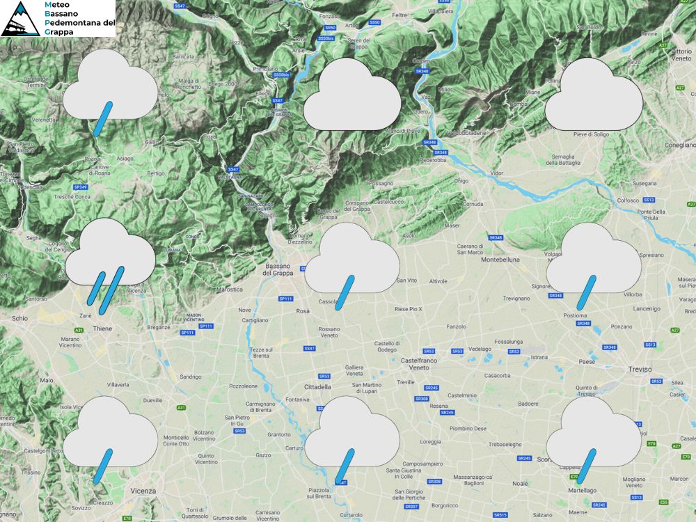 Probabilità di precipitazioni settore pianura: 70% tra pomeriggio e sera a partire da nord verso sud.