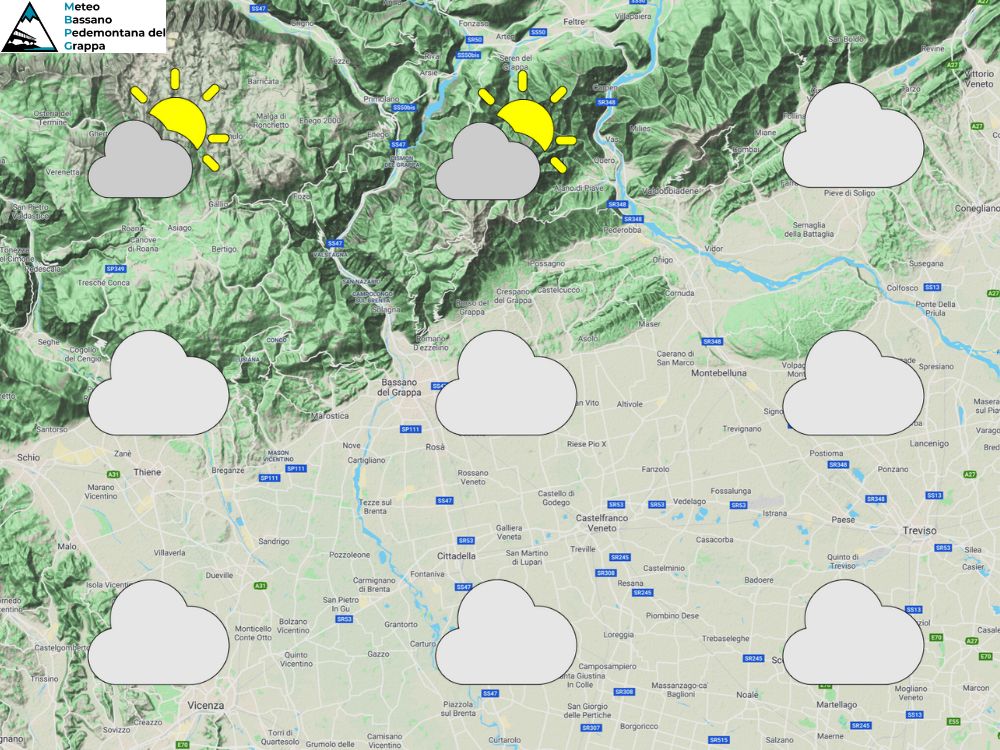 Un promontorio di alta pressione garantisce tempo stabile e ben soleggiato su tutti i settori con clima gradevole e temperature massime attorno ai 17-18 gradi nelle ore centrali del giorno. Minime invece tra 6 e 9 gradi all’alba in pianura, valori ancora al di sopra della norma, così come anche in quota. Attendibilità: media