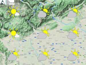 Tempo stabile e soleggiato soprattutto al mattino, nel pomeriggio ed in serata avremo qualche nube passeggera innocua ma sempre alternata a schiarite. Temperature in calo con minime sottozero anche in pianura e massime attorno ai 7-8 gradi. Attendibilità: medio-alta