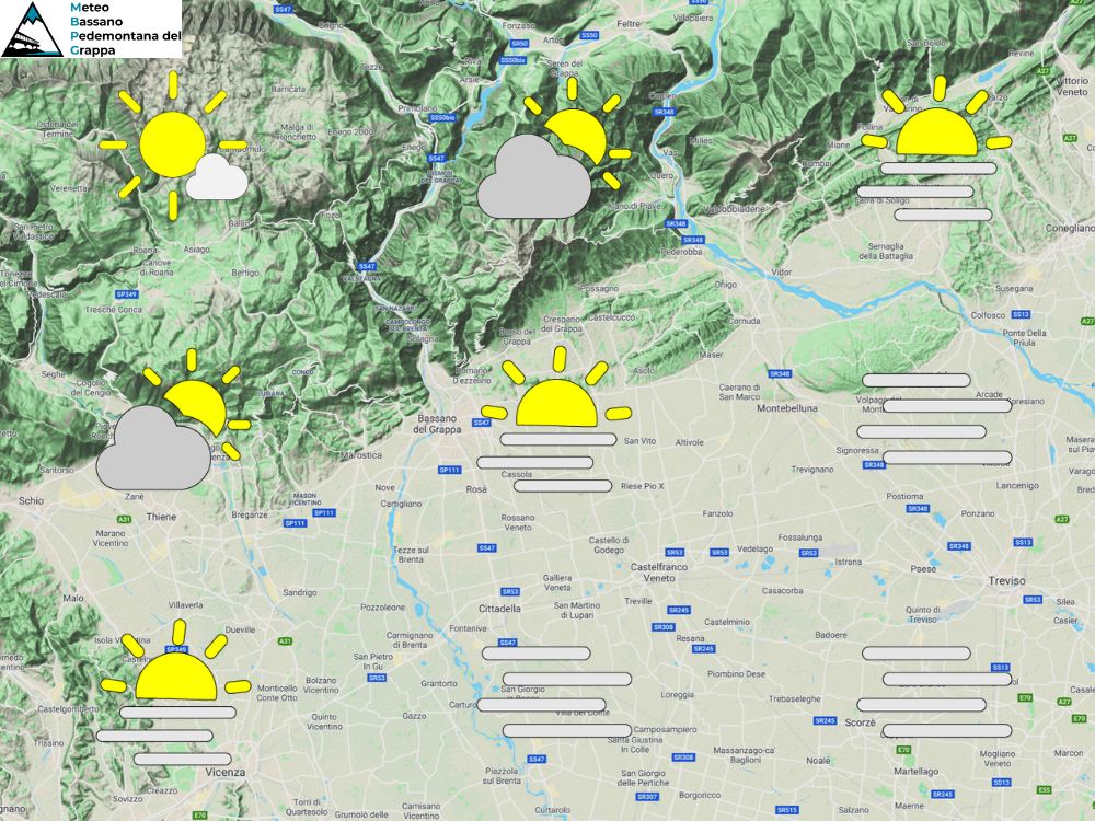 Continua questa lunga fase di tempo stabile su tutto il Nord Italia e quindi anche sul nostro Veneto, la giornata di sabato infatti sarà ancora dominata dall’alta pressione ed essendo ancora nel semestre freddo alta pressione significa anche inversioni termiche con umidità e possibili nebbie sulle pianure. Al mattino infatti avremo nebbie diffuse sulle pianure in parziale diradamento entro l’orario di pranzo ma con foschie e nubi basse sparse che rimarranno a offuscare il sole. Nel pomeriggio poi ancora tempo stabile ma con tanta foschia sulle pianure in un contesto di clima comunque mite, in serata le nebbie torneranno a farsi strada da sud-est verso l’interno e risulteranno anche fitte su medie e basse pianure. Temperature in leggero calo in quota ma anche sulle pianure avremo una flessione di qualche grado, i valori comunque rimarranno ancora sopra la media del periodo.