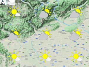 L’alta pressione si indebolisce gradualmente e lascia spazio a correnti più umide sud-occidentali. La giornata di venerdì tuttavia non porterà piogge, anzi, il cielo sarà parzialmente nuvoloso e quindi avremo ancora schiarite seppur con sole un po’ offuscato. Al mattino cielo poco nuvoloso con possibili nebbie o foschie dense in pianura. Clima freddo umido. Nel pomeriggio schiarite sui settori occidentali e meridionali, nubi basse addossate alle Prealpi su alte pianure e pedemontane con cielo più grigio. In serata cielo nuvoloso per nubi basse saldate a foschie. Ancora schiarite sui settori a nord delle Prealpi. Temperature minime in leggero aumento, massime stazionarie, valori in linea con la norma in pianura, ancora ben al di sopra invece in quota.
