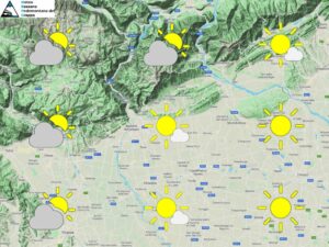 Il Nord Italia continua a beneficiare di correnti secche nord-orientali che, nonostante un’alta pressione debole, mantengono tempo stabile e soleggiato con qualche momento nuvoloso in prevalenza notturno. La giornata di venerdì partirà con cielo sereno sui settori orientali mentre residue nubi saranno presenti su quelli occidentali ma in allontanamento. Nel pomeriggio ampio soleggiamento su tutta la pianura, qualche nube in più sulle Prealpi ma senza alcun fenomeno. In serata torneranno a diffondersi nubi sparse a partire da nord, sempre innocue. Temperature minime in calo soprattutto sui settori orientali, massime stazionarie, attorno ai 18-19 gradi in pianura.
