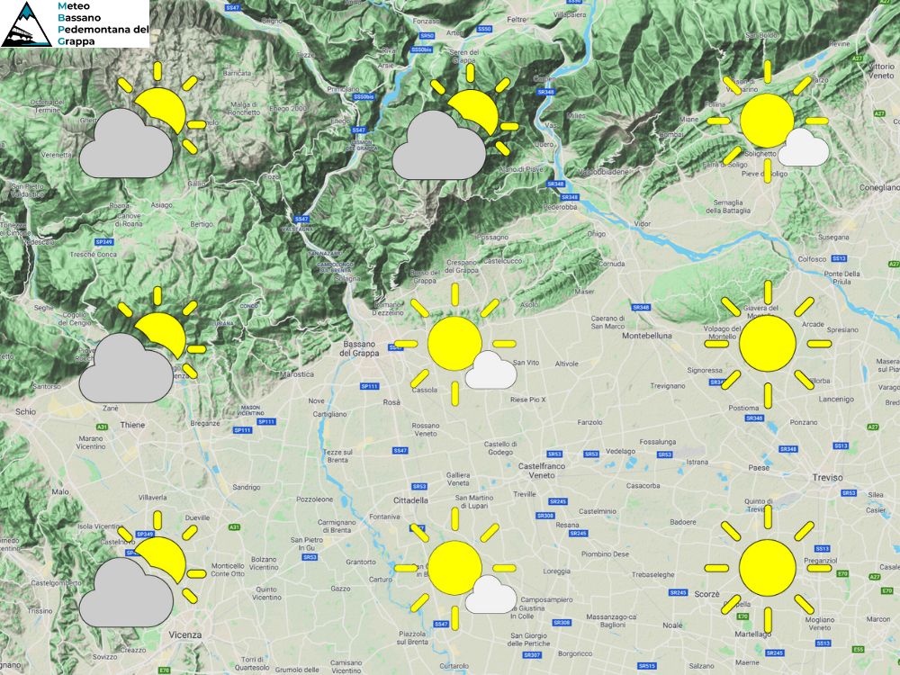 Ultima giornata con correnti orientali, il tempo si presenterà ancora abbastanza buono, osserveremo soltanto qualche nube sparsa in più ma senza nessun fenomeno. Le temperature saranno in ulteriore lieve calo e sotto la media soprattutto in quota. Attendibilità: media