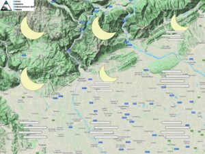 Bella giornata di sole su gran parte del territorio, qualche nebbia solo sui settori più meridionali. Temperature in lieve calo a tutte le quote con brinate in pianura e massime tra 9 e 10 gradi. Attendibilità: medio-alta