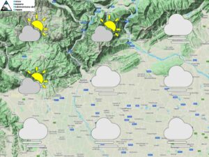 Dicembre prosegue senza grossi scossoni, il tempo infatti rimane variabile con umidità molto elevata nei bassi strati associata a nubi basse e foschie mentre in quota ci sarà spazio per maggiori schiarite con il classico mare di nubi verso le pianure. Al mattino foschie dense saldate a nubi basse in pianura, schiarite invece sulle zone montane. Nel pomeriggio alternanza di nubi e brevi schiarite in un contesto di clima mite e con massime ancora oltre i 10 gradi. In serata ampi spazi di sereno in quota mentre sulle pianure e sulle valli avremo la formazione di nebbie. Temperature in ulteriore aumento in quota, in leggero calo invece in pianura, rimarranno comunque al di sopra della media su tutti i settori.