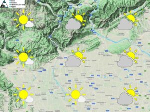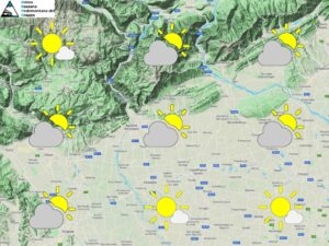 La perturbazione giunta nella giornata di giovedì si allontana verso est e il tempo torna a migliorare con schiarite via via più ampie. Dal punto di vista termico saremo ancora ben al di sopra della media soprattutto in pianura dove le massime raggiungeranno agevolmente i 12-13 gradi. Al mattino cielo parzialmente nuvoloso sui settori centro-orientali, maggiori spazi di sereno su quelli occidentali. Nel pomeriggio tempo stabile su tutto il territorio seppur con la formazione di nubi basse addossate alle Prealpi, clima mite. In serata nubi basse sparse tra pedemontane e pianure alternate comunque a schiarite. Le temperature saranno stazionarie in quota tendenti al calo a fine giornata, in pianura minime stazionarie e massime in aumento.