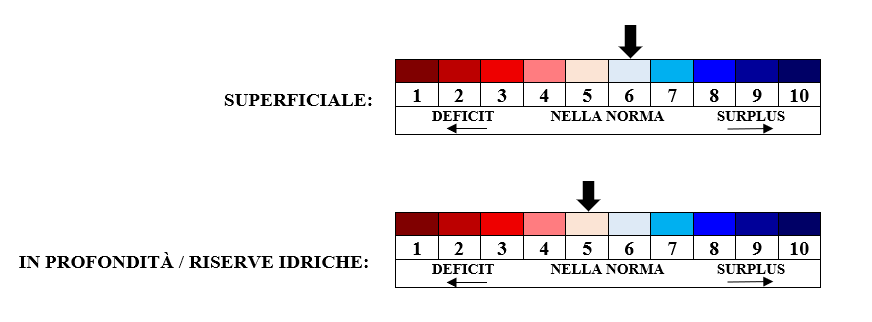 INDICATORE QUANTITÀ D’ACQUA PRESENTE NEL TERRITORIO: indicatore della situazione idrica media nel territorio a livello di strato superficiale (piogge recenti, evapotraspirazione) e in profondità/riserve idriche (falde, acque sotterranee, riserve idriche presenti su laghi e fiumi, quantità di neve presente sui monti). L’indicatore è elaborato direttamente da Meteo Bassano e Pedemontana del Grappa sulla base di dati di stazioni meteo a norma, livelli di falda, livelli di portata dei fiumi, nivometri ecc.