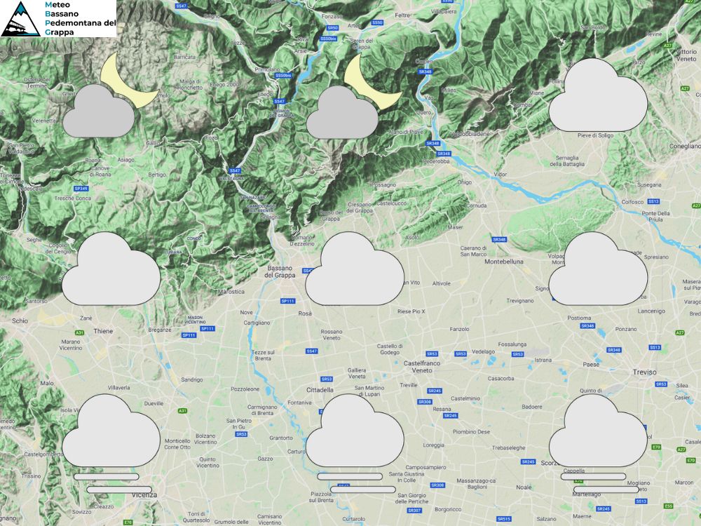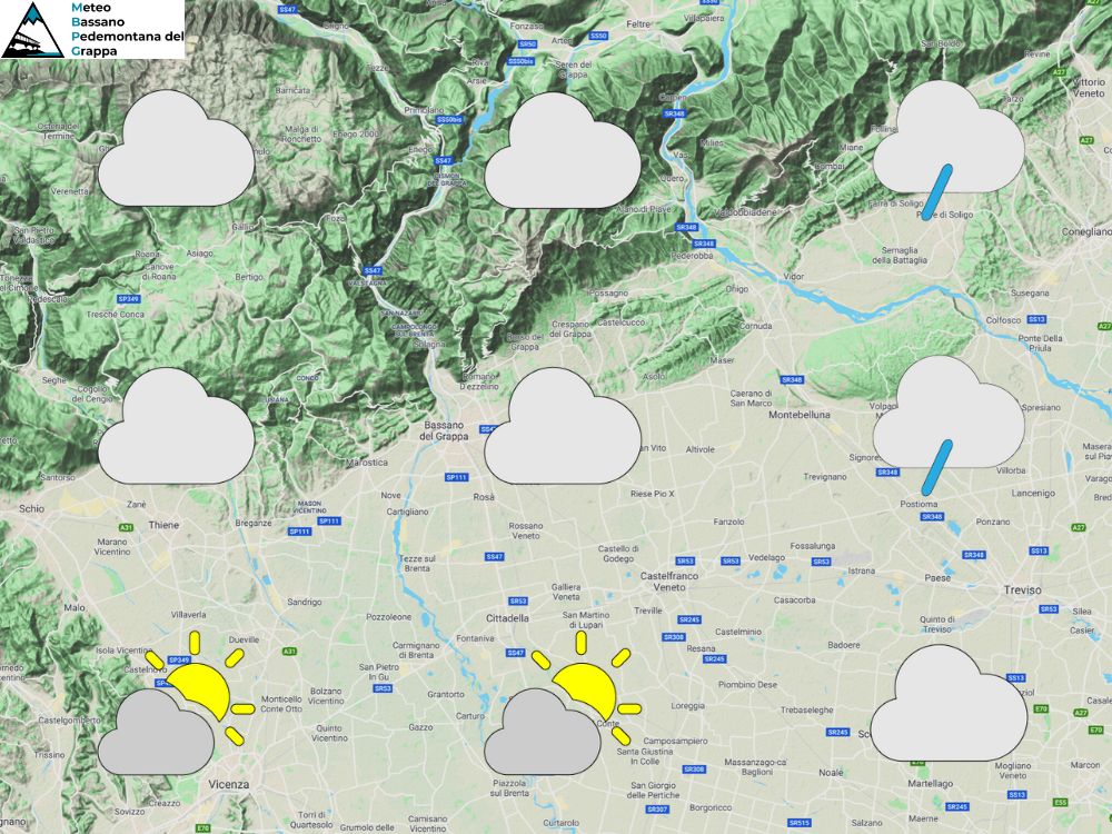 Il tempo rimane abbastanza instabile sul nostro territorio, permangono infatti correnti umide e miti che portano ancora nuvolosità diffusa e qualche debole precipitazione sparsa in un contesto di temperature sopra la media del periodo. Al mattino cielo nuvoloso con qualche debole pioggia su alte pianure e Prealpi. Nel pomeriggio il cielo rimarrà in prevalenza nuvoloso con qualche locale apertura sui settori meridionali. In serata ancora flusso di correnti umide e miti con foschie e nuvolosità sparsa. Temperature come detto in ulteriore aumento sia nelle minime sia nelle massime che raggiungeranno anche i 18 gradi in pianura.